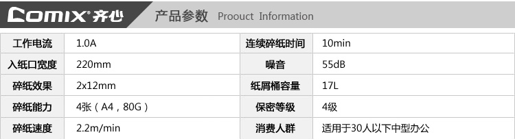 齐心 S333 强力保密型碎纸机 2×12mm/8张纸/17L/单入口/拆信封/续航10min