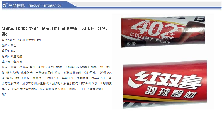 红双喜(DHS)N402 娱乐训练比赛稳定耐打羽毛球 (12只装)