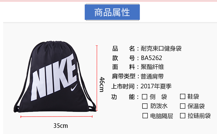 耐克(NIKE) 运动包 Graphic Gym Sack抽绳背包 束口健身袋 健身包 鞋包 BA5