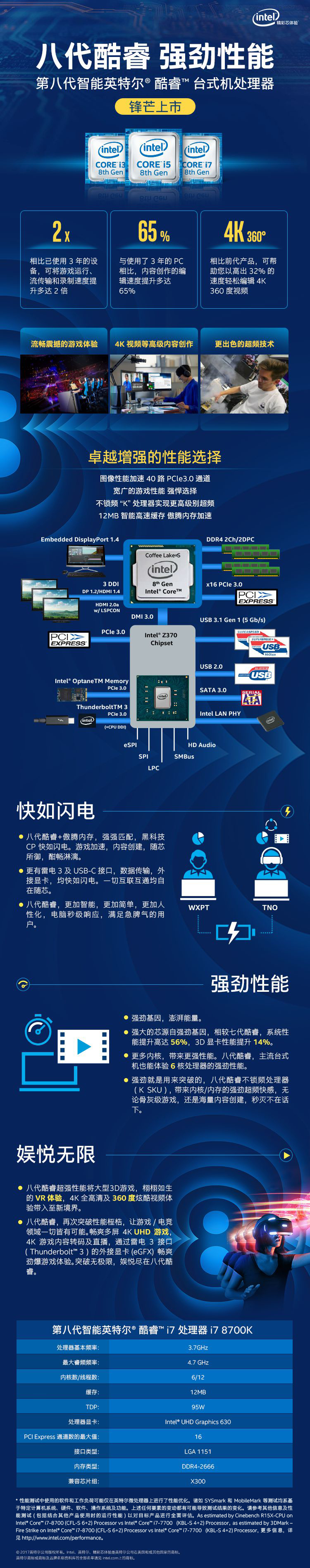 英特尔(Intel) i7 8700K 酷睿六核 盒装CPU处理器