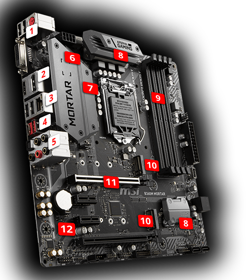 微星(MSI)B360M MORTAR迫击炮 电竞“吃鸡”主板(Intel B360/LGA 115