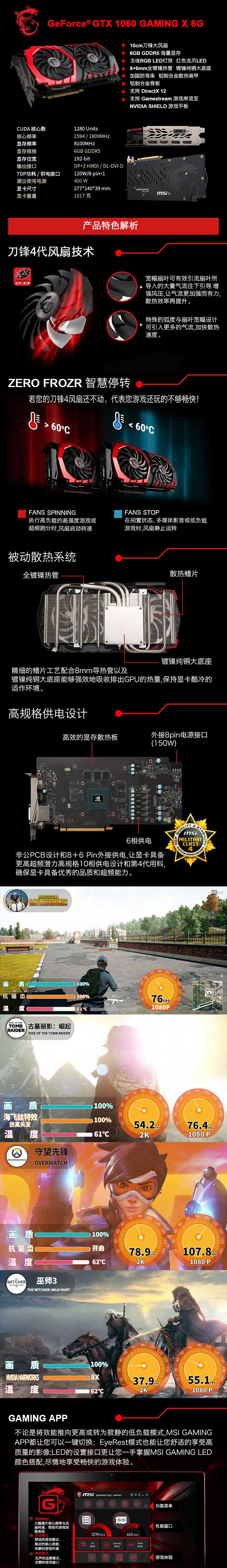 微星(MSI)GeForce GTX 1060 GAMING X 6G 1594-1809MHZ G