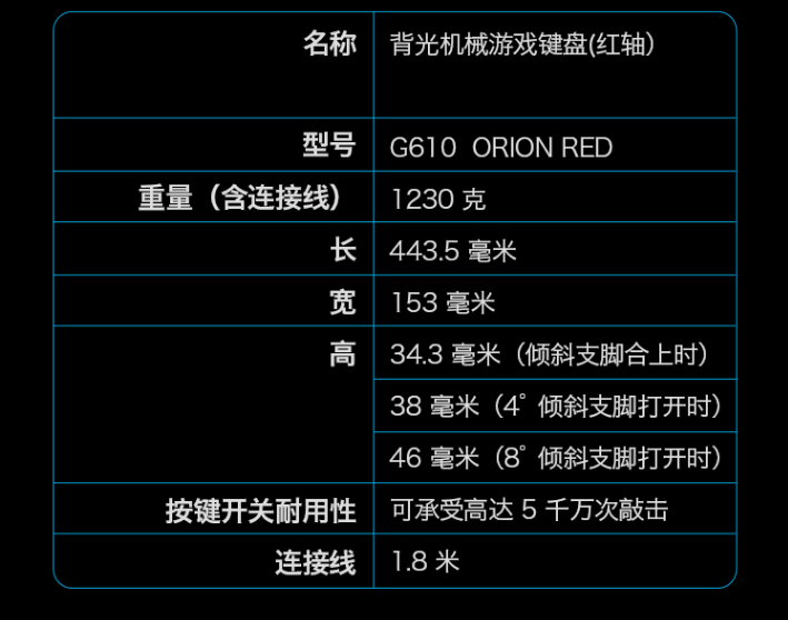罗技(Logitech)G610 Cherry轴全尺寸背光机械游戏键盘 机械键盘 红轴 吃鸡键盘 绝