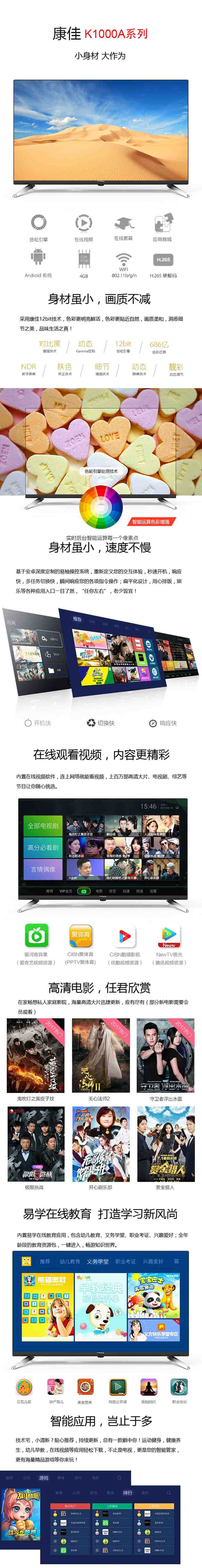康佳(KONKA)43英寸 LED43K1000A 全高清智能电视