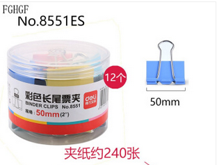 得力长尾夹 50mm 彩色长尾夹 夹子大号 12个/盒