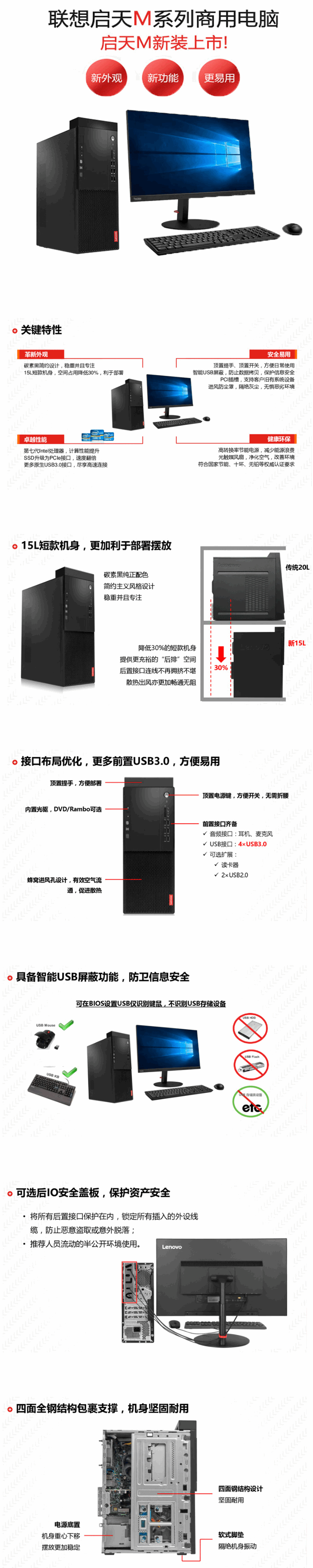 联想台式电脑 启天M415-B054 i3-6100/8G/1T/集显/DVDRW/21.5寸显示器