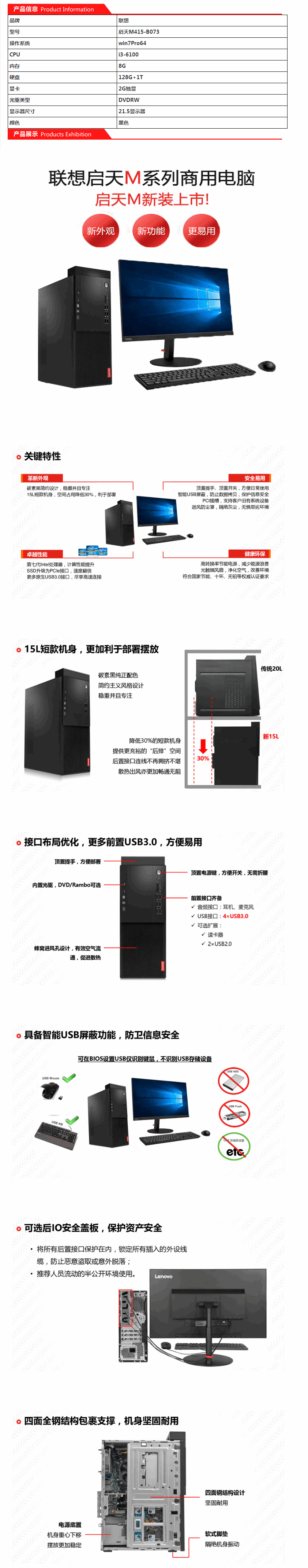 联想台式电脑 启天M415-B073 i3-61008G128G+1T2G独显DVDRWwin7Pr