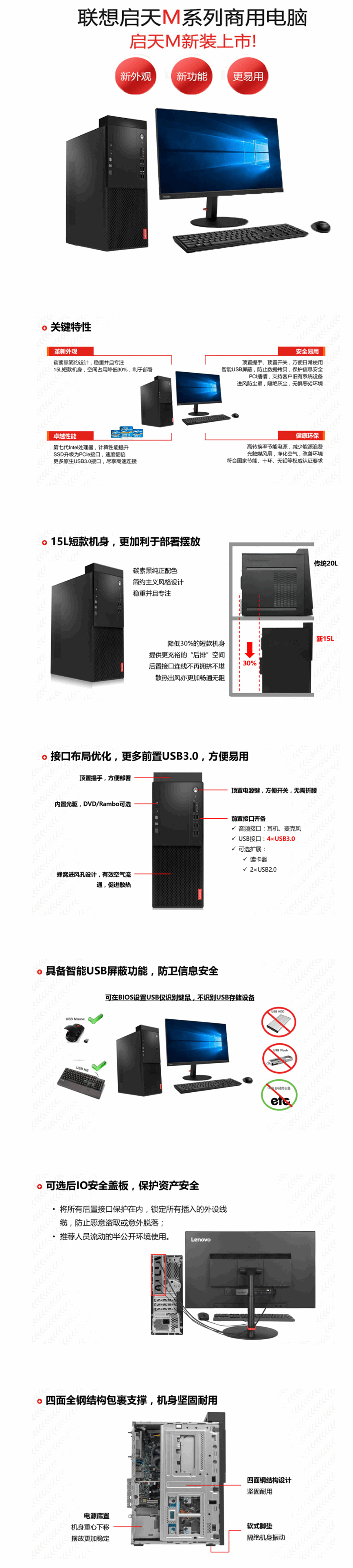 联想台式电脑 启天M415-B053 i3-61004G1T集显DVDRW19.5寸显示器 黑色