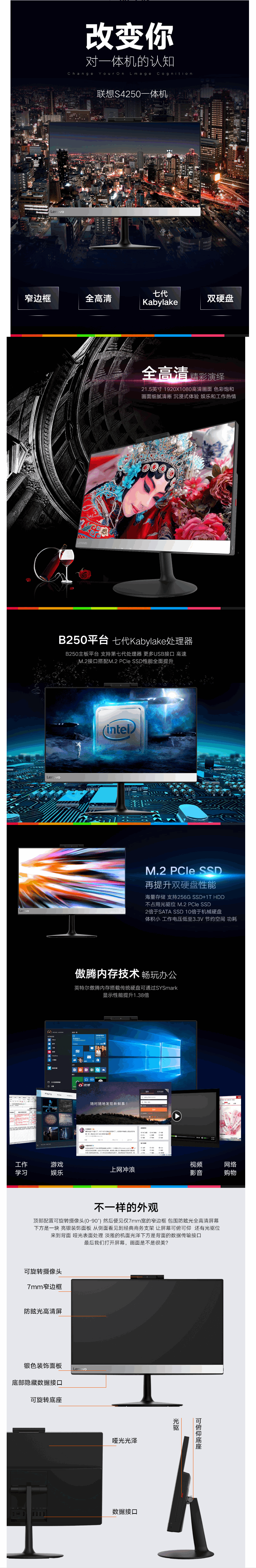 联想 S4250 一体机电脑win10 i3-7100 4G 1T 独显2G 带光驱W10