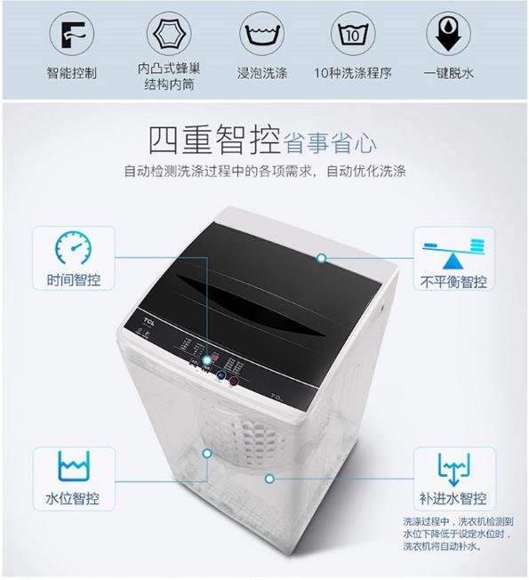 TCL 7公斤全自动波轮洗衣机控制 中途添衣 XQB70-101 宝石黑