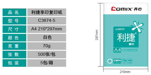 齐心(comix)齐心多功能复印纸 双面打印纸 C3673-4 优品复印纸 A3 70克