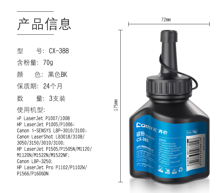 齐心 CX-388 打印机碳粉(1彩盒装3PCS)