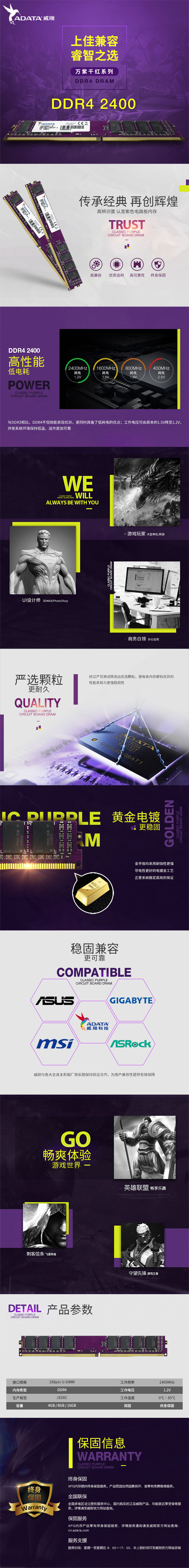 威刚(ADATA) DDR4 2400频 8GB 台式机内存威刚(ADATA) DDR4 2400频