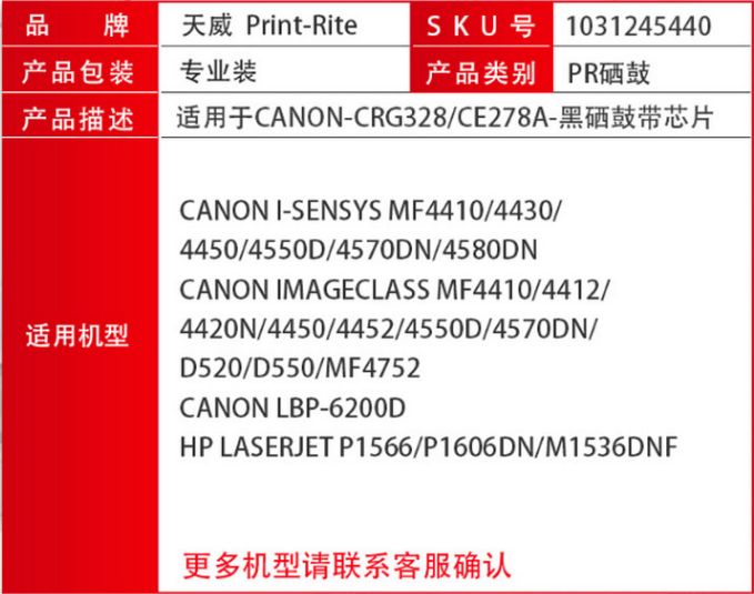 天威(PrintRite)CRG328/CE278A/CRG326 黑色硒鼓