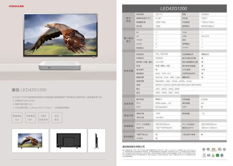 康佳(KONKA) LED42G1200 42英寸全高清智能电视
