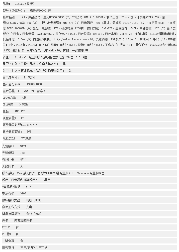 联想 启天M5900-D135 台式计算机