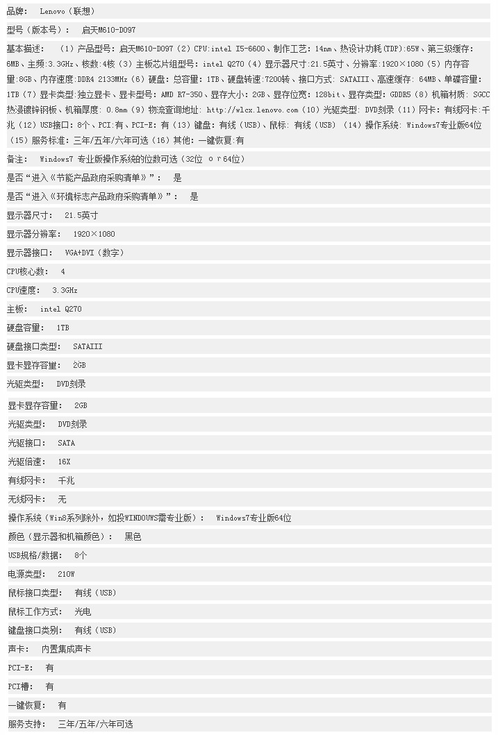 联想 启天M610-D097 台式计算机