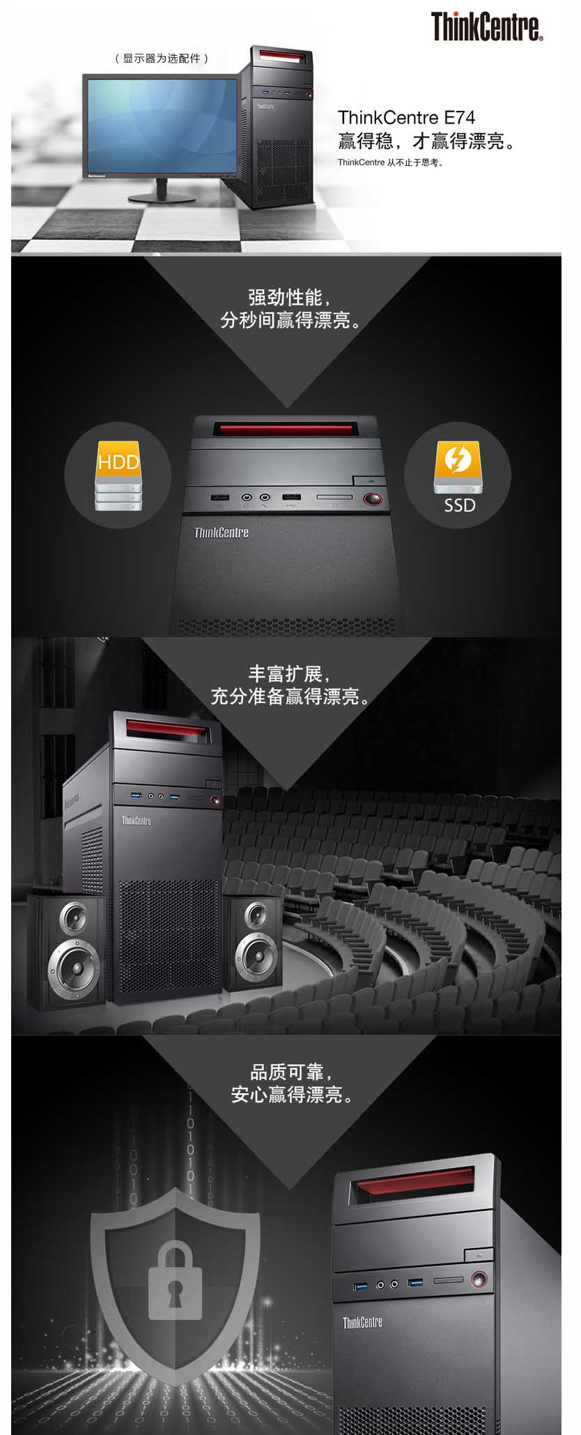 联想 Tkcentre E74(19.5/i3-6100U/4G/500G/集显/DVD刻) 台式机