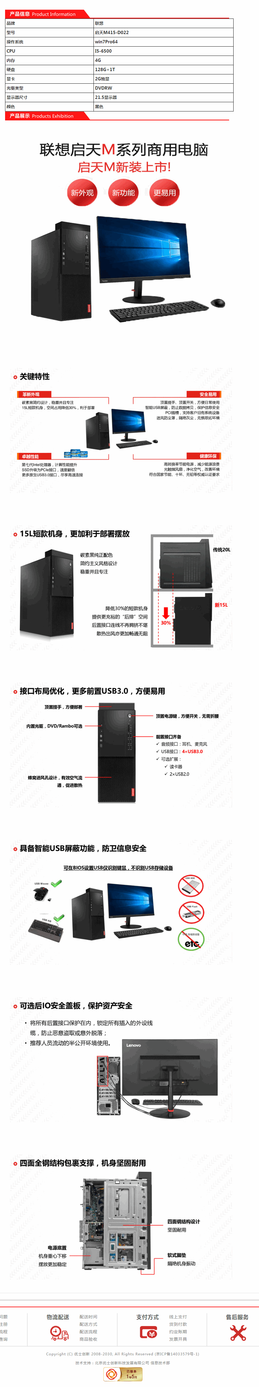 联想台式电脑 启天M415-D022 I5-65004G128G+1T2G独显DVDRWwin7Pr